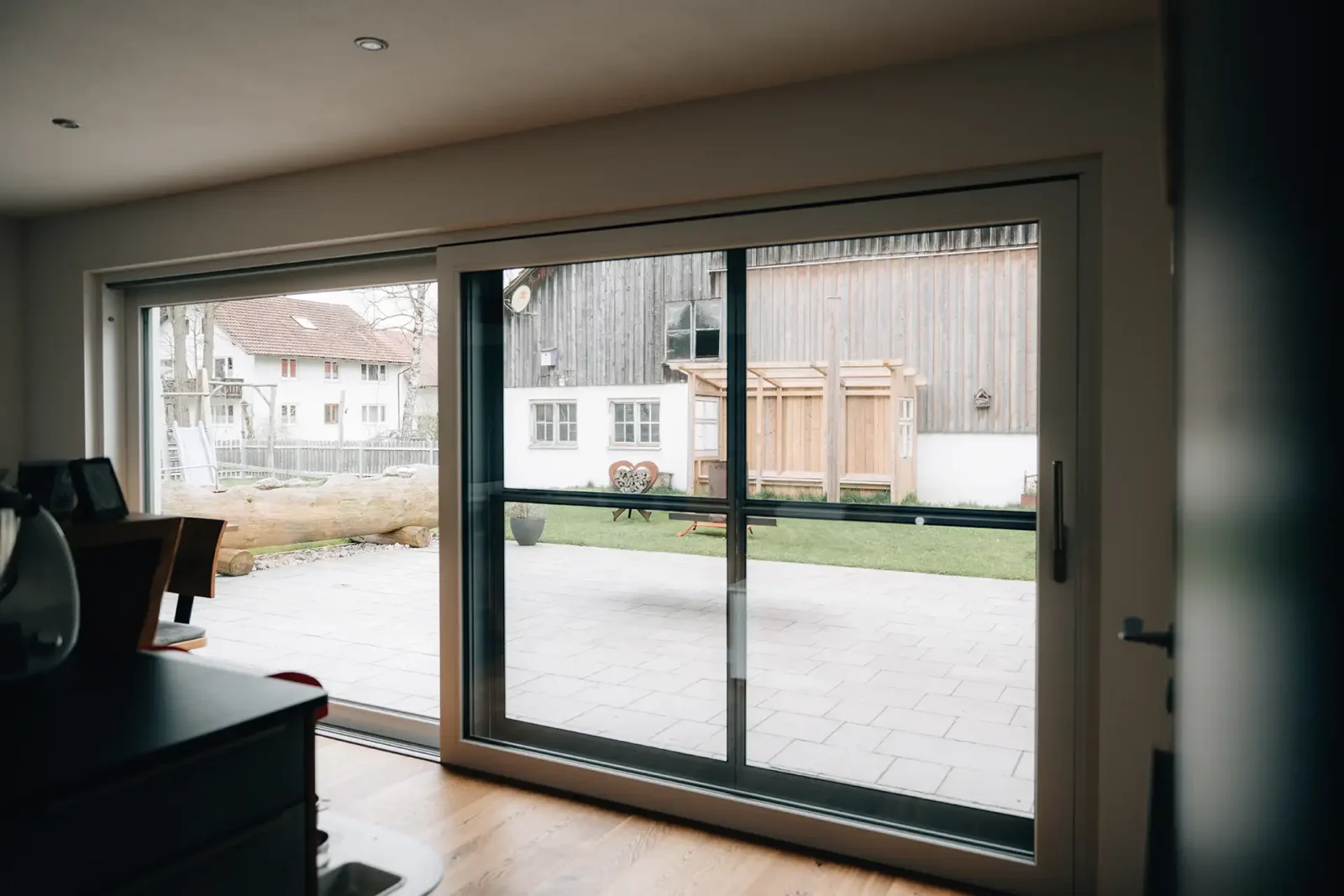 Zum Einsatz kamen elegante Kunststoff-Aluminium-Fenster, eine stilvolle Haustüre, durchdachte Beschattungslösungen sowie passgenauer Insektenschutz. Ein besonderes Highlight war die über fünf Meter breite Hebe-Schiebe-Tür, die großzügig Tageslicht in den Wohnraum bringt und gleichzeitig höchste technische Ansprüche erfüllt.